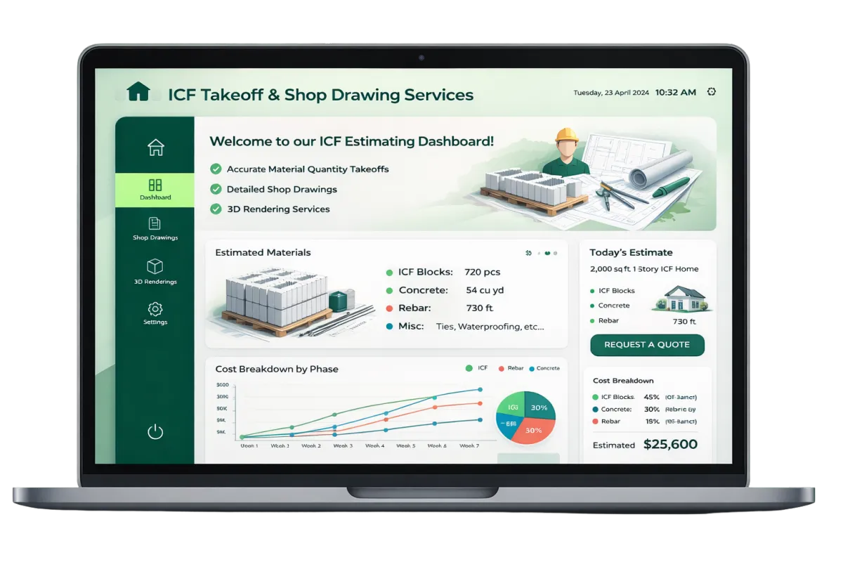 We provide fast and accurate takeoffs for ICF block, rebar, and more. Using your company's past performance metrics, we can even predict labor pricing and material costs better than anyone.